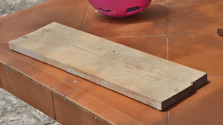 Esta guia foi feita com aglomerado duma secretária velha que ia para o lixo. Está direita e é polida o que ajuda no deslizamento da madeira.